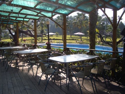 泳池畔的露天咖啡座椅