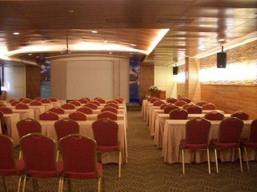 首先我們來看到的大的會議室,可以容納120人,若不排桌子可以容納更多人